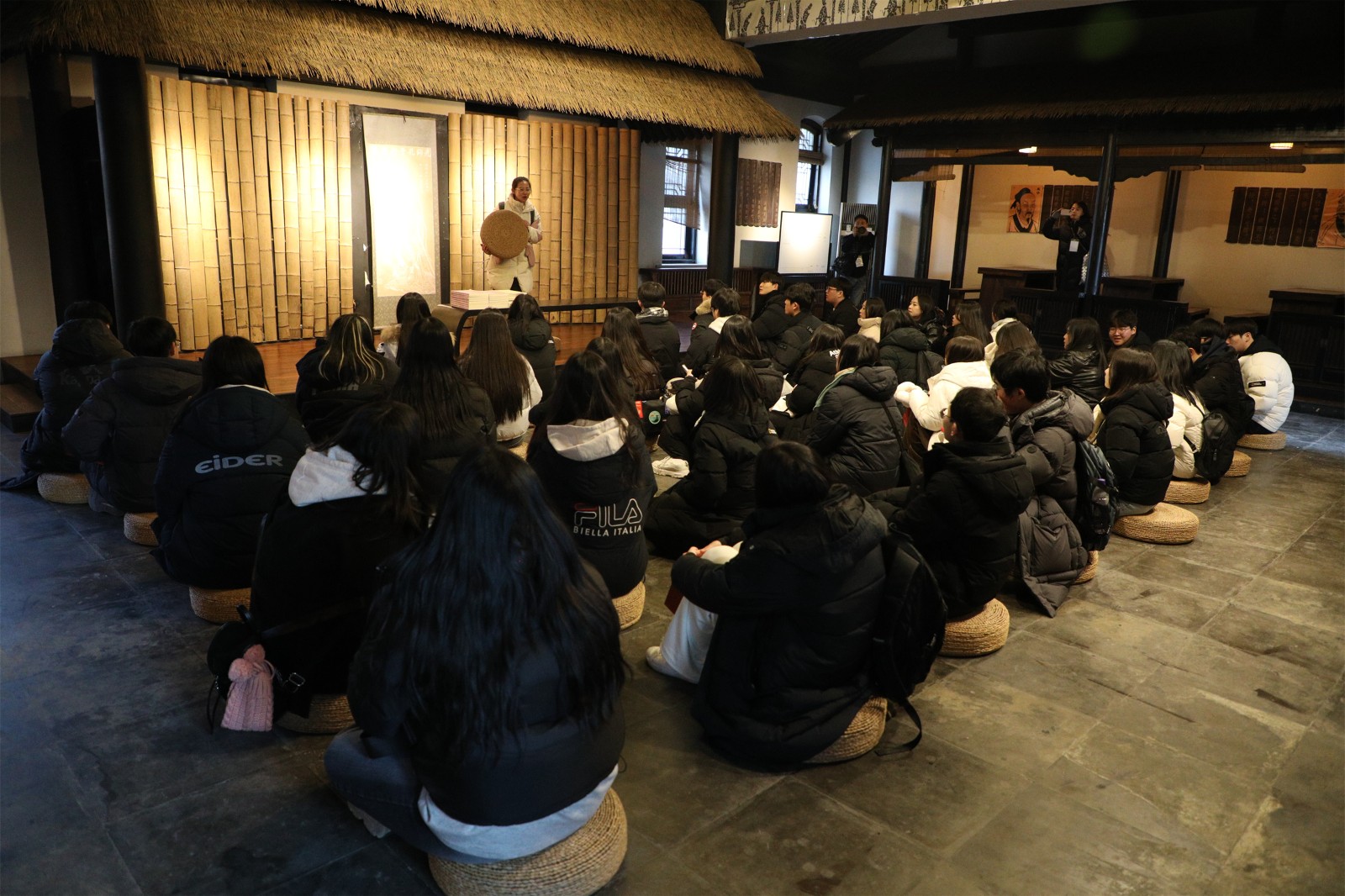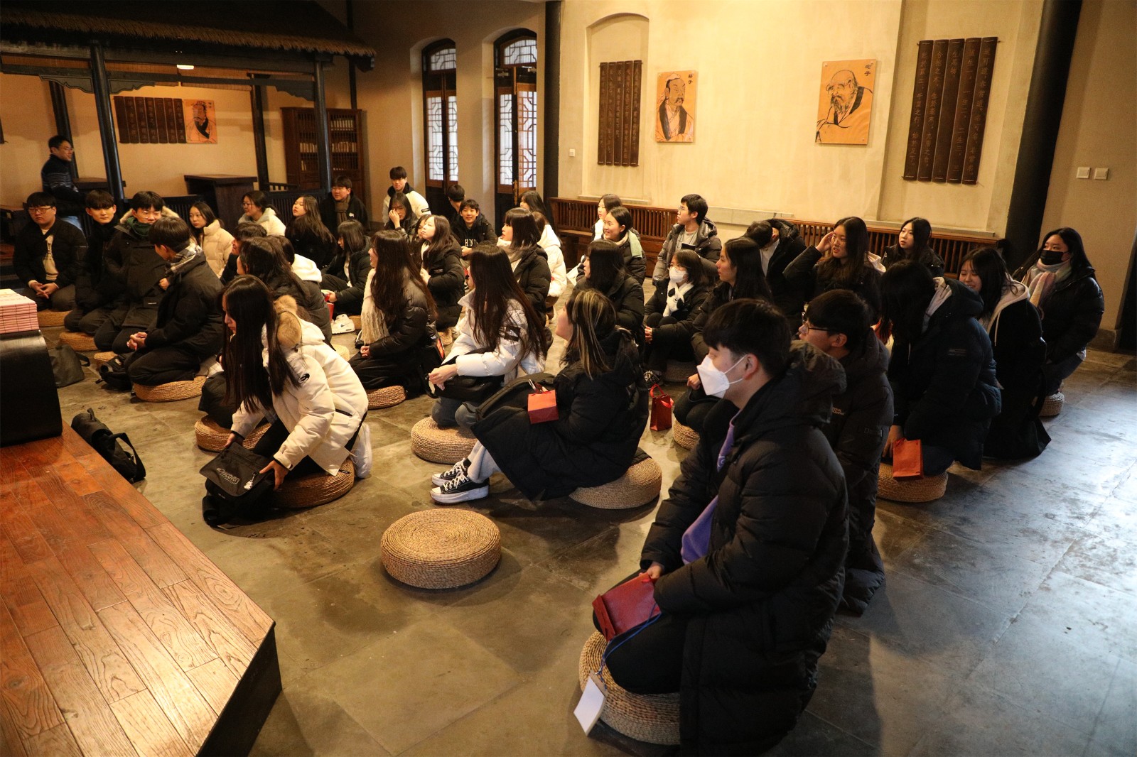 韓國訪問團在于月芳副主任和教研組長李博舒婕老師的帶領(lǐng)下在東校區(qū)參觀了科技創(chuàng)新實驗室、錢學(xué)森紀(jì)念館、三味書屋和杏壇。