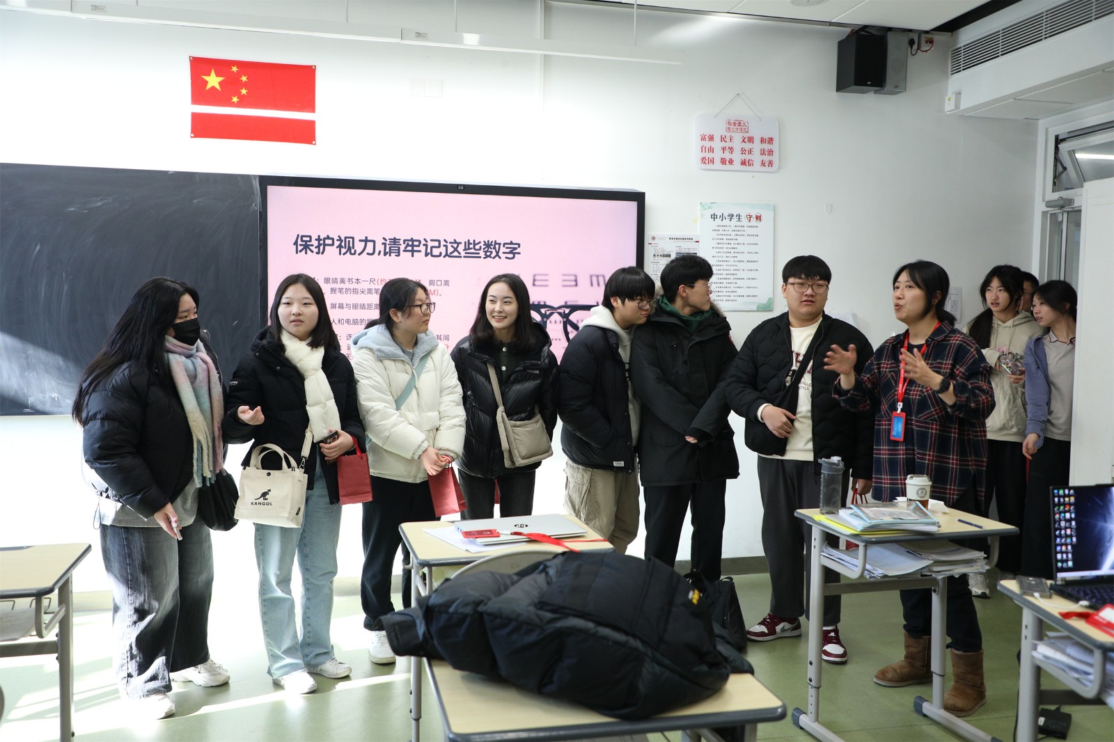 隨后,韓國訪問團還觀看了中國學(xué)生課間操時間的跑步訓(xùn)練,他們紛紛翹起大拇指,為附中學(xué)子不畏冬日嚴(yán)寒進行體育訓(xùn)練的精神點贊。