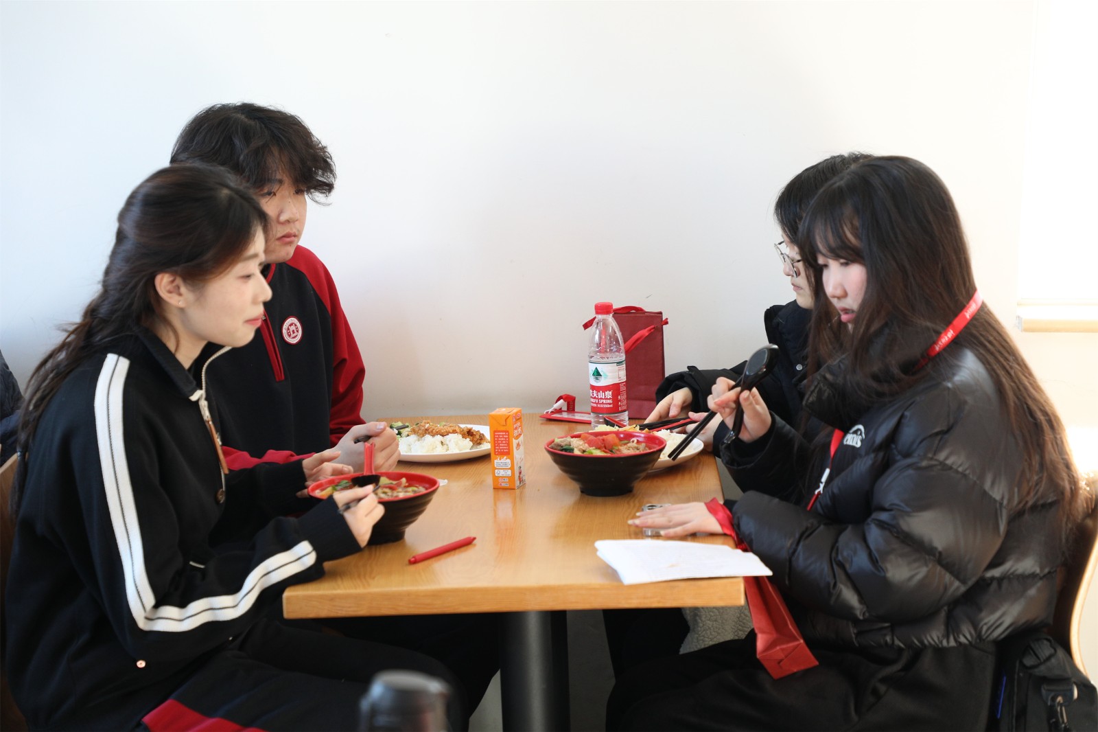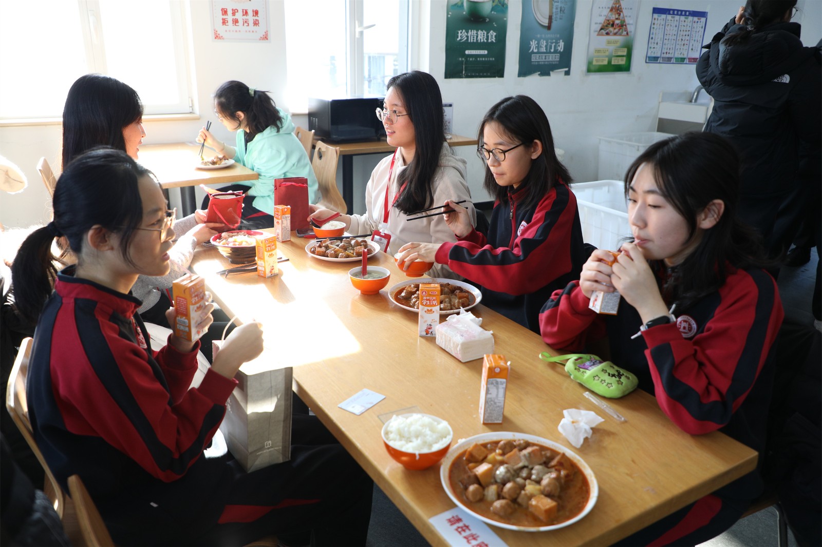 分組聽完課后,韓國學(xué)生與AP班的學(xué)生兩兩結(jié)對交流,并和中國學(xué)生在食堂共進美味的午餐。