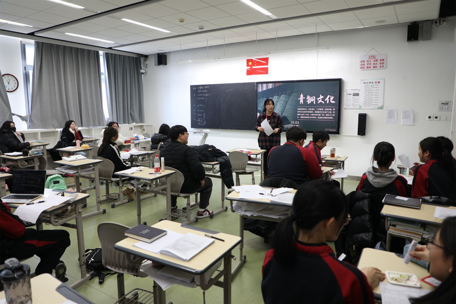 韓國師生來到了西校區(qū),參觀了西區(qū)體育館、黑匣子劇場,然后他們深入教室,分組聽了六門別開生面的附中AP特色課程。