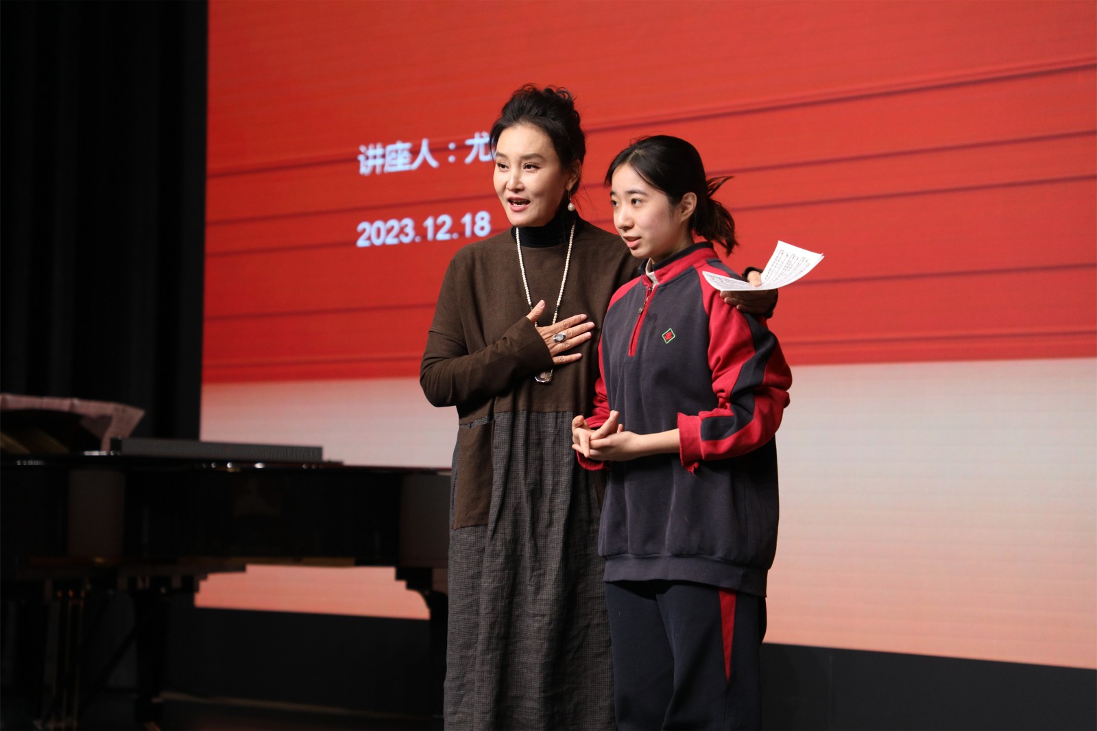 2023年12月18日,我校開展了“藝術(shù)名家進(jìn)校園”活動(dòng),本次活動(dòng)由北京師范大學(xué)附屬中學(xué)學(xué)生處、國際部、學(xué)生會(huì)、劇薈戲劇空間社團(tuán)共同策劃,邀請中央歌劇院女高音歌唱家、國家一級演員尤泓斐老師,為同學(xué)們帶來了以“從《白毛女》到《茶花女》東西方經(jīng)典歌劇賞析”為主題的精彩講座。