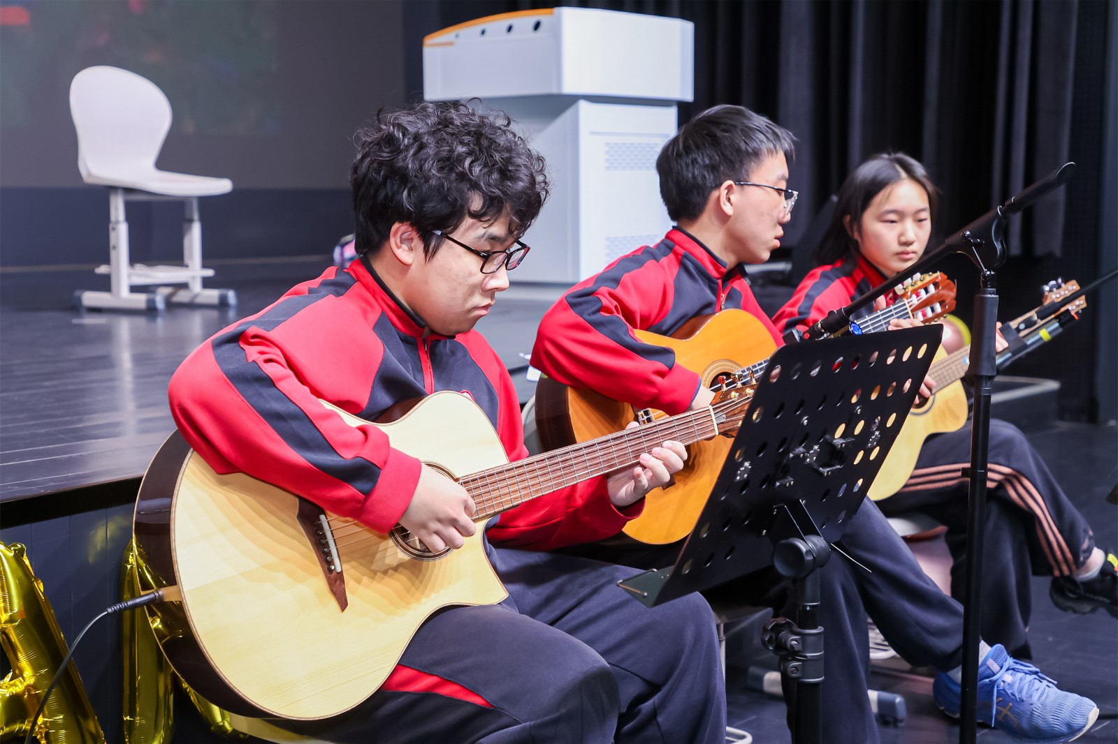 由升學(xué)指導(dǎo)陶暢老師和許安妮、陳奕舟同學(xué)帶來的一首《Shadow Of The Sun》讓同學(xué)們?cè)谛碌囊荒曛心軒еMc力量,以夢(mèng)為馬,不負(fù)韶華,砥礪前行。