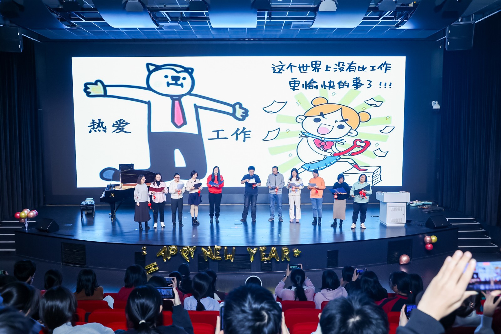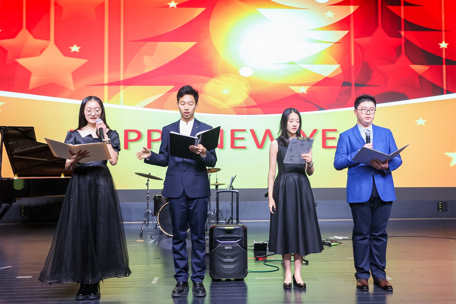 王莉萍校長(zhǎng)等校領(lǐng)導(dǎo)們的到來將聯(lián)歡會(huì)氣氛推向高潮。王莉萍校長(zhǎng)的新年致辭包含著對(duì)AP學(xué)子的囑托與深深的期望。校領(lǐng)導(dǎo)們合唱的一曲《瀏陽河》與抽獎(jiǎng)環(huán)節(jié)更是將氣氛推到高潮。