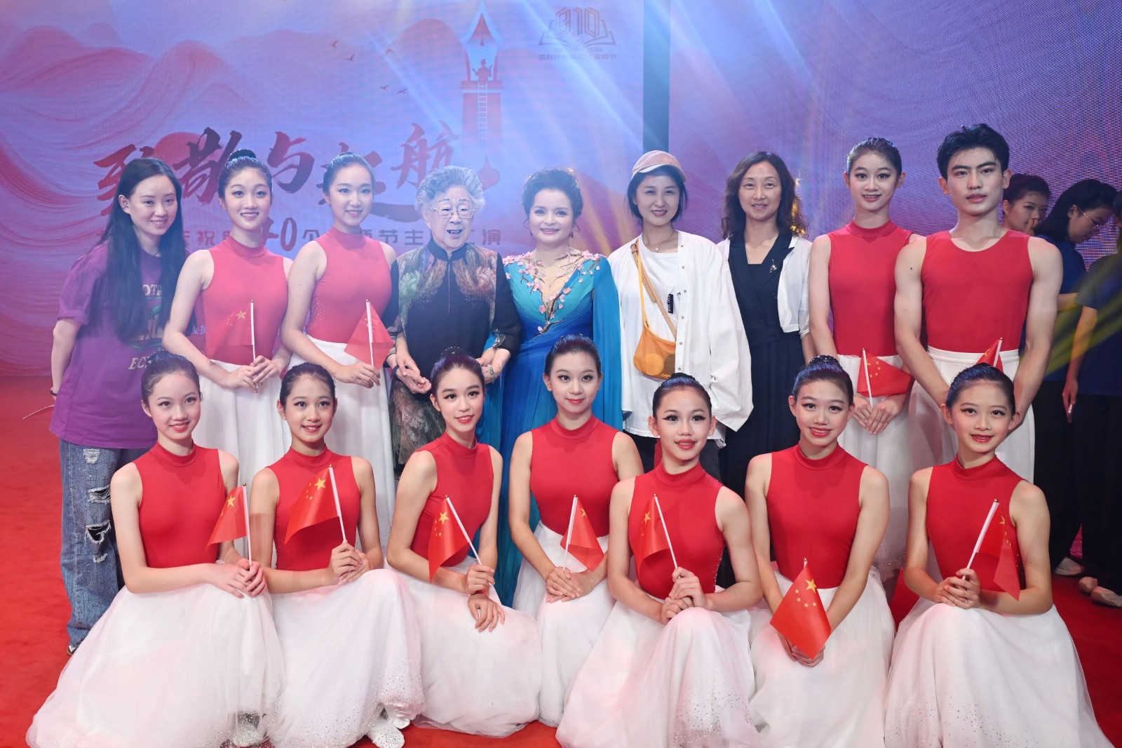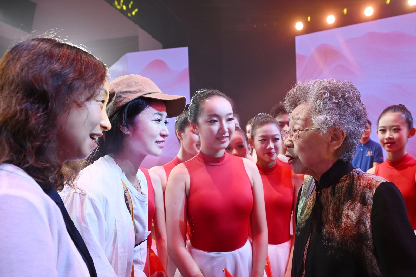 本次教師節(jié)匯演,我校舞蹈團(tuán)成員與90歲高齡的黃會林老學(xué)長同臺。演出后兩代附中學(xué)子親切交流,作為北京師范大學(xué)藝術(shù)與傳媒學(xué)院的創(chuàng)立者黃會林學(xué)長對金帆舞蹈團(tuán)成員們的演出給予高度評價,同學(xué)們也被黃會林學(xué)長在匯演上的講述深深打動。兩代附中學(xué)子雖然成長于不同的時代,但附中精神與情懷始終引領(lǐng)著我們在追光的道路上不斷前行。